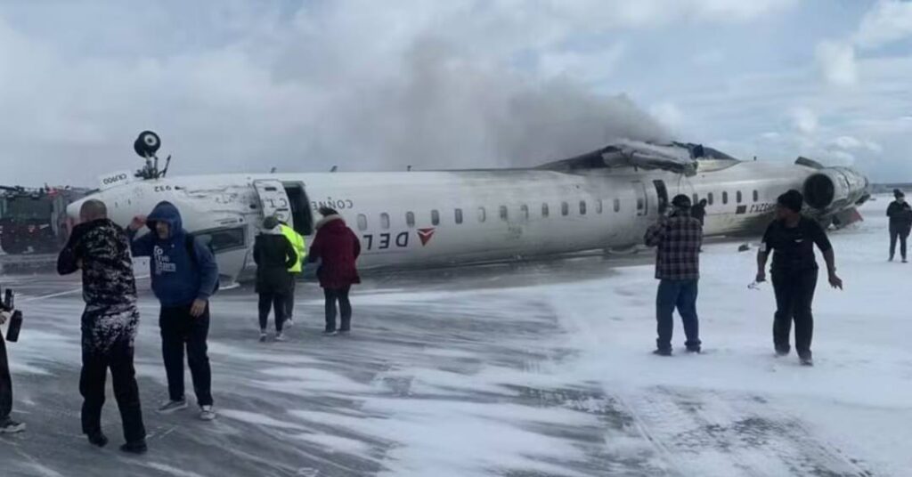 Um avião da Delta capotou ao pousar nesta segunda-feira (17) no aeroporto Pearson, em Toronto, no Canadá, com 81 pessoas a bordo. O acidente aconteceu por volta das 15h30 (horário local) e deixou 21 passageiros feridos. A aeronave modelo Mitsubishi CRJ-900LR vinha de Minneapolis, no estado de Minnesota, nos Estados Unidos.