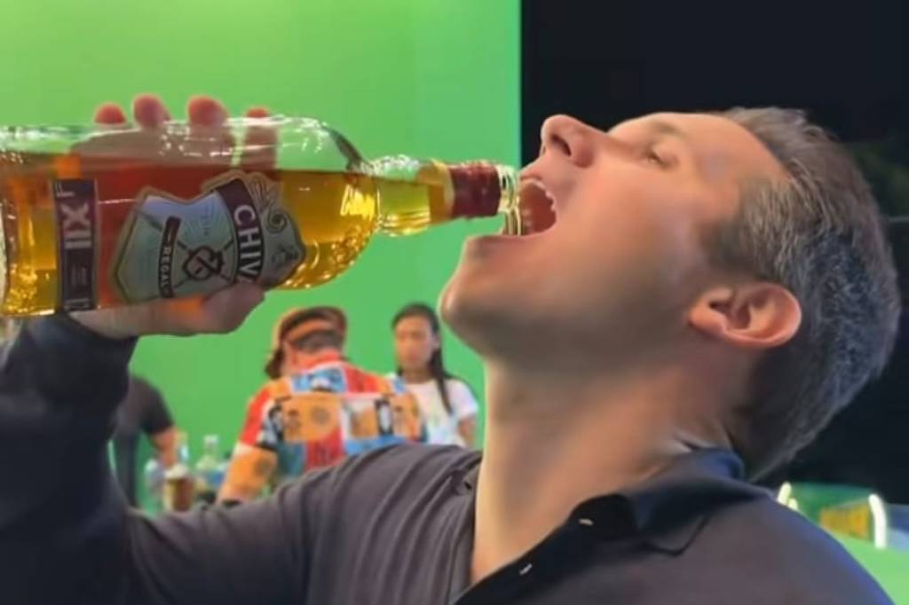 No evento da Paraíba, um homem identificado como Fabiano, que está ao lado do presidente da Câmara, é desafiado a mostrar como se toma um gole de uísque. Após afirmar “beba com cautela, não com moderação”, ele toma a bebida no gargalo e passa a garrafa para Motta, que bebe também e a ergue em tom de celebração. O deputado ri ao final e afirma: “Ave Maria”.