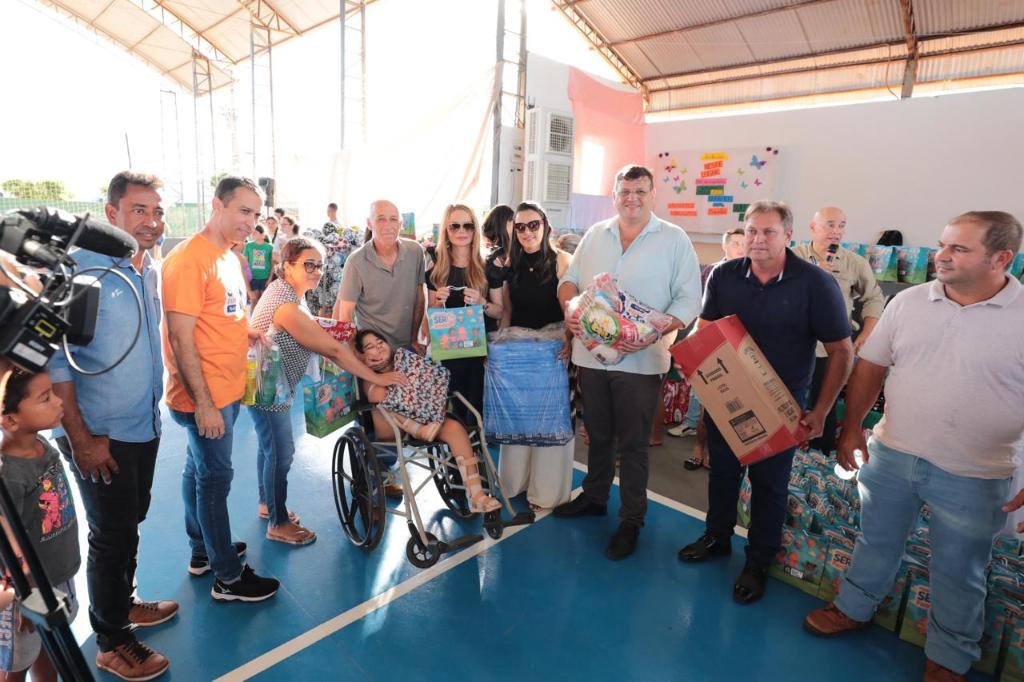 A primeira-dama de Mato Grosso, Virginia Mendes, promoveu a entrega de cestas de alimentos, cobertores, filtros de água e brinquedos nos municípios Nova Lacerda e Conquista D’Oeste nesta segunda-feira (19.5).