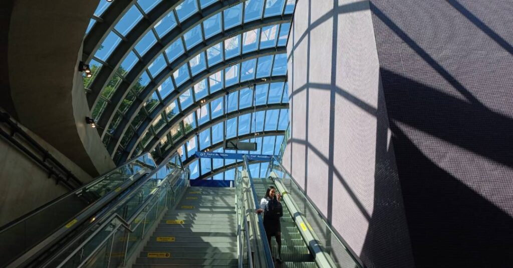 12h28: partida da estação Chácara Klabin e, na terceira parada, chegada na estação AACD-Servidor da linha lilás