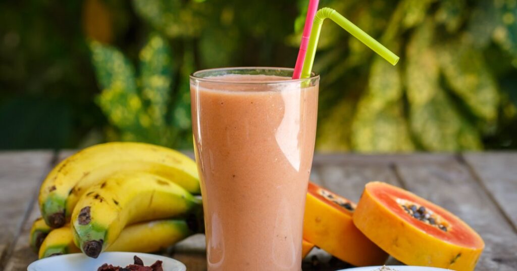 Evite misturar ultraprocessados para conferir sabor doce ao preparado, como achocolatados ou bebidas lácteas adoçadas. O mamão já é doce, mas, se quiser impulsionar ainda mais esse sabor, tente usar outra fruta com sabor adocicado mais marcante.